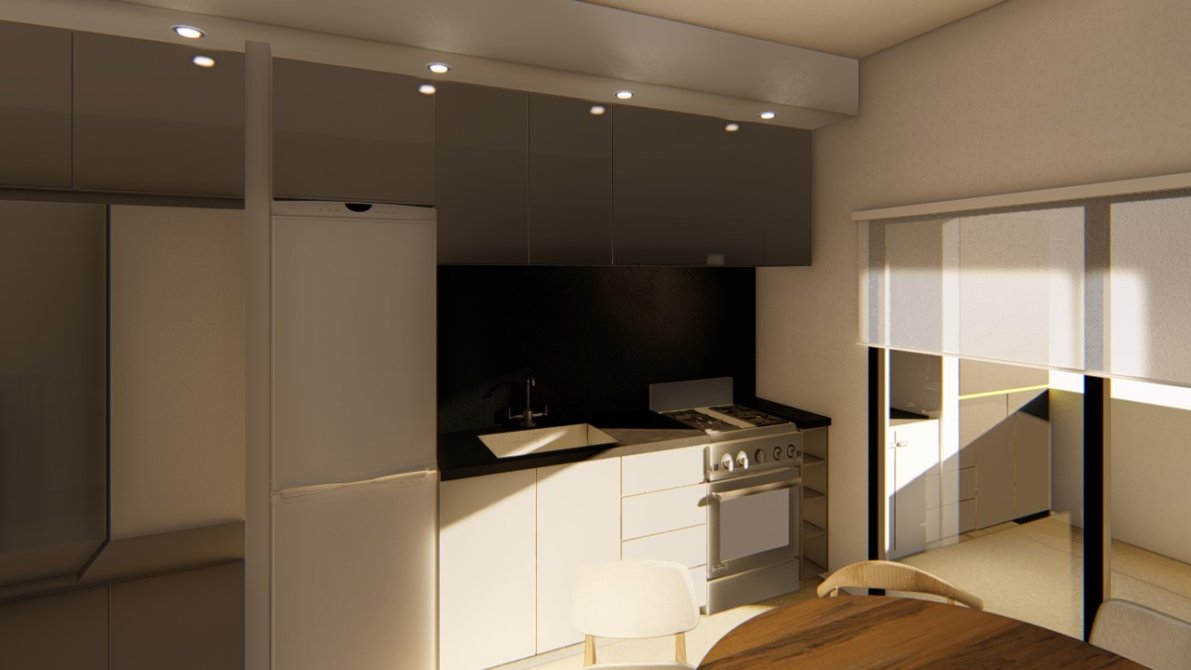 Cocina, mesada y bajo mesada, alacena, termo eléctrico de 53 litros